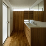 建物内部は、生活動線が切れないような回遊性があるように、家族が集まる居間や食堂は、いろんな場所から出来るだけ庭が眺められること、そして少しでも町並みに寄与出来るような緑のある場所を作ることができたらという思いから設計を始めました。