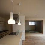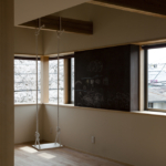 コンセプトは「桜」。桜を愛し、桜と共に人生を楽しむ家族のための家。そんな言葉がふさわしい。眼下には公園の桜が溢れ、床材にも桜を採用。室内外に淡く綺麗な桜色が溢れている。大容量の収納空間を擁する玄関を構え、奥にはリビングダイニング。小上がりの和室が落ち着きを与える。外部デッキの高さをリビングダイニングの床と合わせた事で、窓を開けると室内と外部が一体となる。二階の子供室にはロフトと、壁に据え付けられた黒板。まさに人生を楽しむための家が完成した。