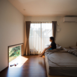 お客様を招くリビングと、プライベートなキッチンダイニングを中庭を挟んで分けた間取りなど