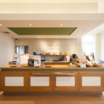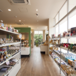 アーバンな雰囲気の製菓材料店。区画整理で新しく生まれた町に合わせ、シャープな外観をデザインした。業態柄、何百に及ぶアイテム数をスッキリと見せるよう什器もシャープでシンプルなものを採用する一方、温かみを持たせるために床を木調とした。2階は教室になっており、ヘリンボーン貼りの床が冷たさを抑え賑やかさを与える。人を大切にする企業方針は人を育てた。出入口の木製扉はかつてのお弟子さんが木工職人となり師匠の恩に応えた作品だ。
